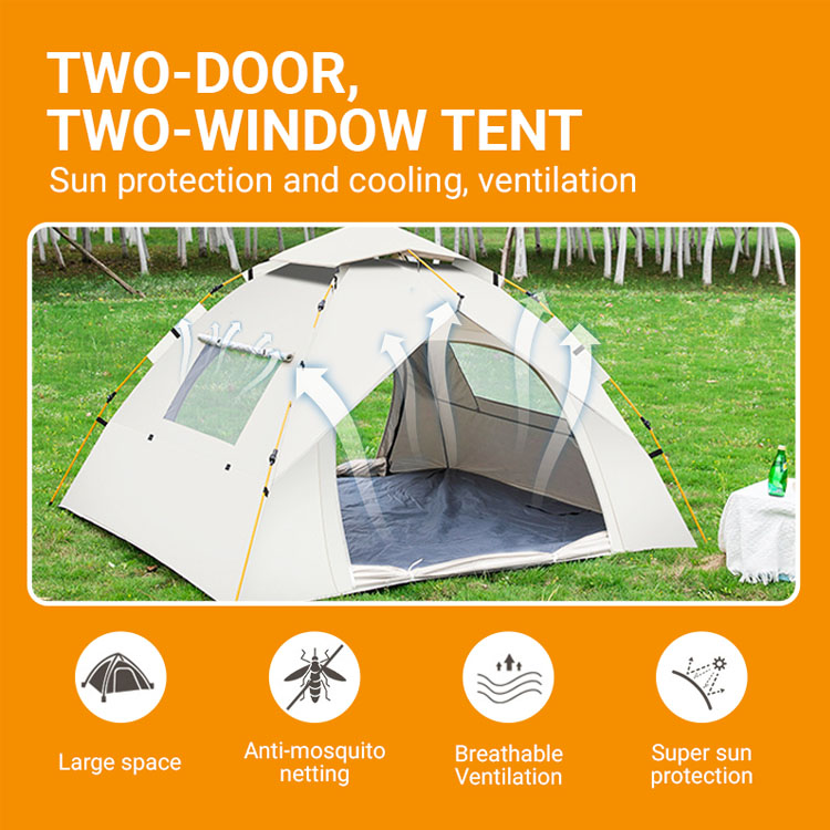 Sempurna untuk berkhemah, mendaki, perjalanan pantai, pesta BBQ belakang rumah, dan perayaan luaran. Reka bentuk pengudaraan dengan tingkap mesh memastikan aliran udara yang selesa dalam pelbagai keadaan cuaca.