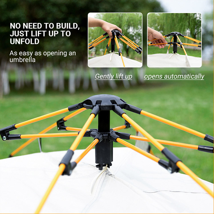 Ciri -ciri teknologi pembukaan automatik yang inovatif yang membolehkan khemah untuk muncul dalam bentuk penuh dalam beberapa saat, menghapuskan prosedur perhimpunan rumit dan menjimatkan masa perkhemahan yang berharga.