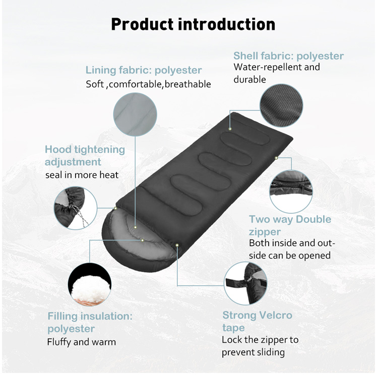 4 musim luaran kalis air jenis beg tidur. Perlindungan semua cuaca yang muktamad untuk pengembaraan luar. Beg tidur sampul berkualiti tinggi ini mempunyai pembinaan kalis air yang unggul, memastikan keselesaan dan kehangatan sepanjang empat musim. Sesuai untuk berkhemah dan mendaki dalam pelbagai keadaan iklim.