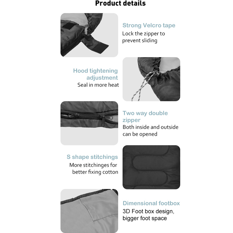 Direka untuk pengembaraan luar sepanjang tahun, beg tidur ini menyediakan penebat haba yang boleh dipercayai dari malam-malam musim panas ke perkhemahan musim sejuk, dengan pelbagai keselesaan yang sesuai untuk pelbagai keadaan iklim dan perubahan bermusim.