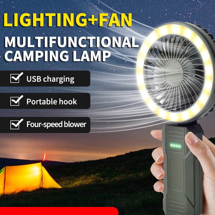 4000mAh Multi-fungsi Luar Mini Lampu Lampu Handheld Fan.Sstay Cool and Lookinated On All Your Adventures. Lampu peminat berkhemah LED mudah alih ini menggabungkan peminat yang kuat dengan pencahayaan yang terang. Bateri 4000mAh yang besar memastikan kuasa boleh dicas semula USB yang tahan lama. Reka bentuk pegang tangan yang padat adalah sesuai untuk kegunaan luaran.
