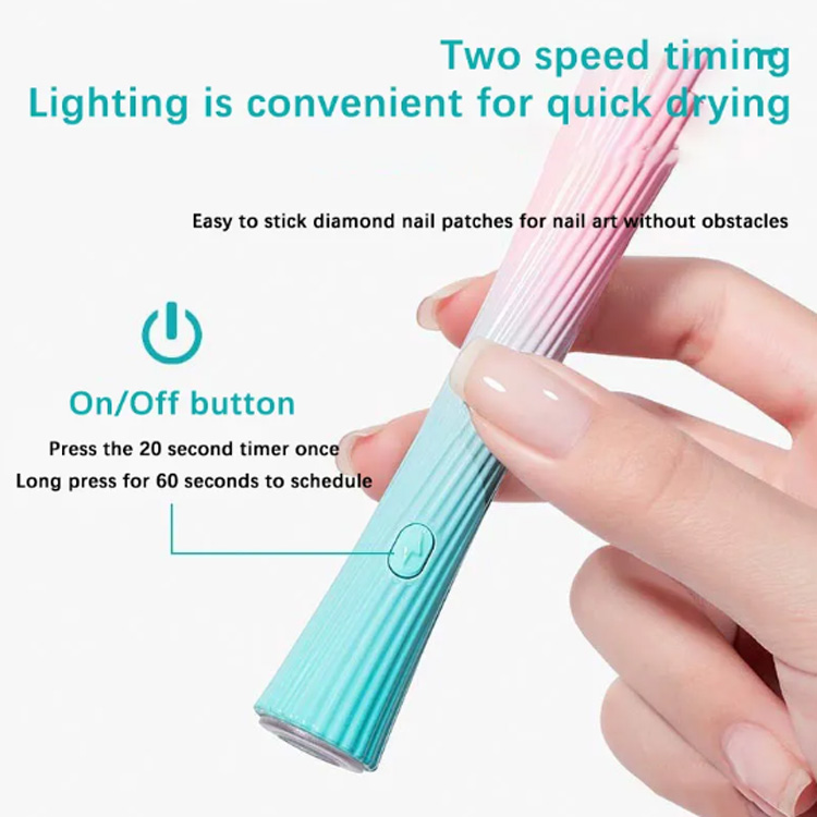 Mini Mini UV LED Kuku Lampu Kata Hand-Held. Menggabungkan reka bentuk berbentuk telur yang comel, ia adalah ringan, padat, dan mesra perjalanan, sesuai untuk penjagaan kuku yang sedang berjalan. Dengan manik 3W atau 4W yang kuat, ia memastikan cepat dan menyembuhkan. Fungsi berkuasa USB menjadikannya mudah digunakan di mana-mana sahaja, sementara tetapan masa membolehkan operasi tanpa kerumitan. Sesuai untuk peminat kuku DIY dan profesional, lampu kuku inovatif ini menjamin kemasan yang berkualiti tinggi dan lancar.