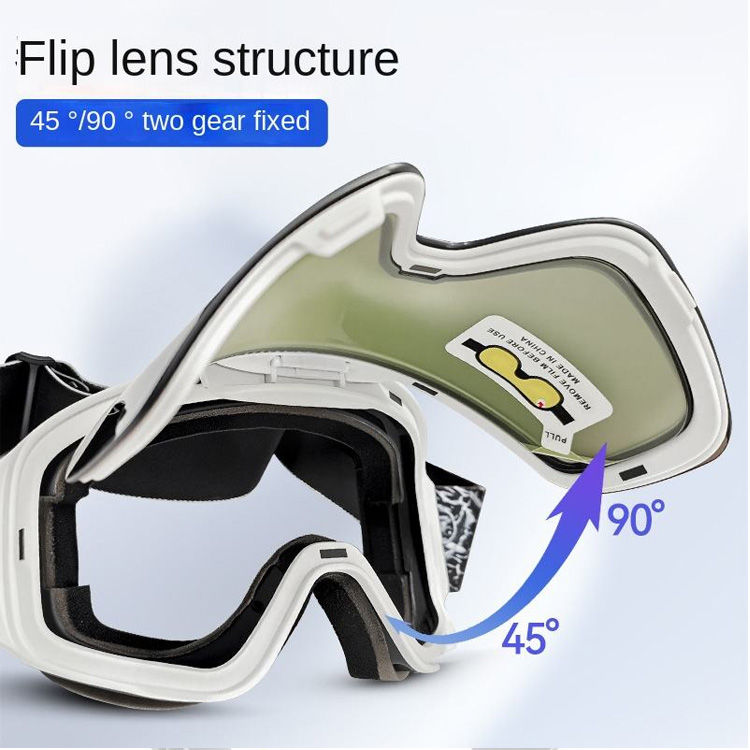 Ciri-ciri sambungan magnet gred aeroangkasa yang membolehkan kanta polarisasi utama dibalik dengan serta-merta atau terpisah sepenuhnya untuk beralih cepat antara keadaan cahaya yang berbeza tanpa mengeluarkan bingkai goggle.