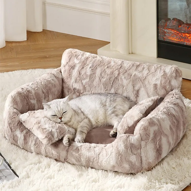 Katil haiwan peliharaan dua sisi dengan bantal sofa tidur tanpa slip