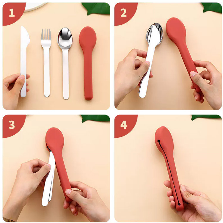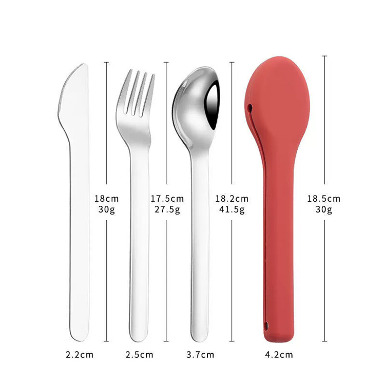 Berkhemah berkhasiat berkualiti tinggi menetapkan silikon silikon. Set alat makan berkualiti tinggi ini mempunyai ciri-ciri keluli tahan karat tahan lama dalam kes silikon pelindung. Sempurna untuk perkhemahan, perjalanan, dan berkelah, ia memastikan makan yang elegan dan bersih di mana -mana sahaja.