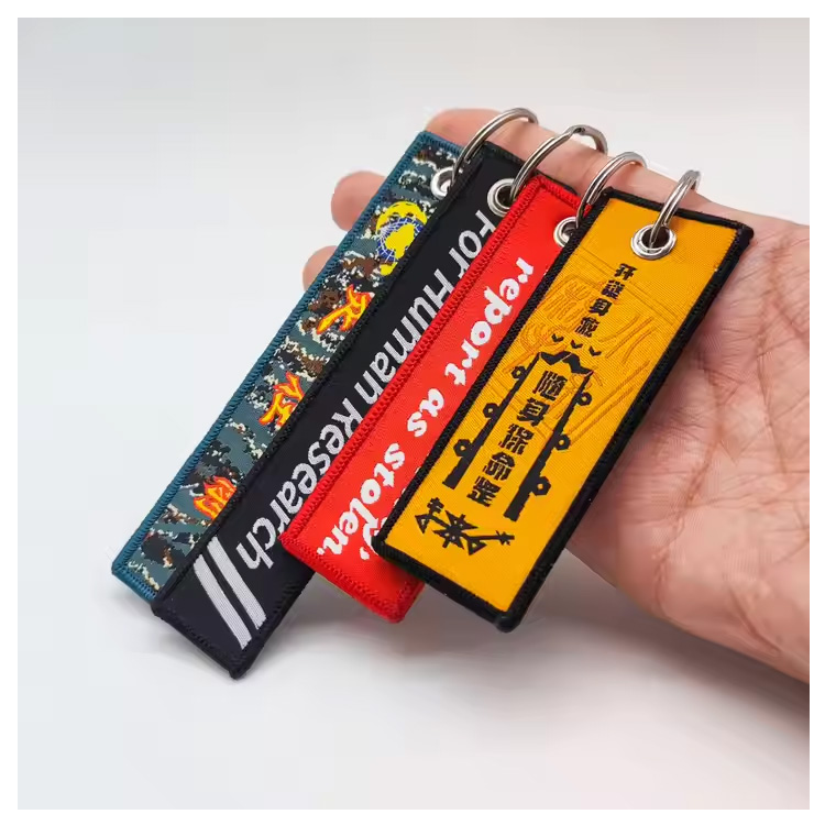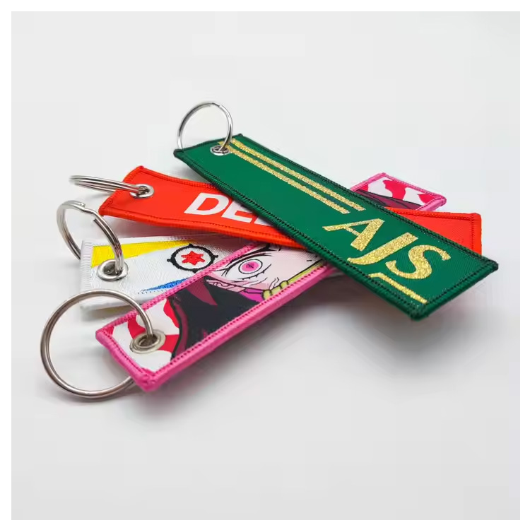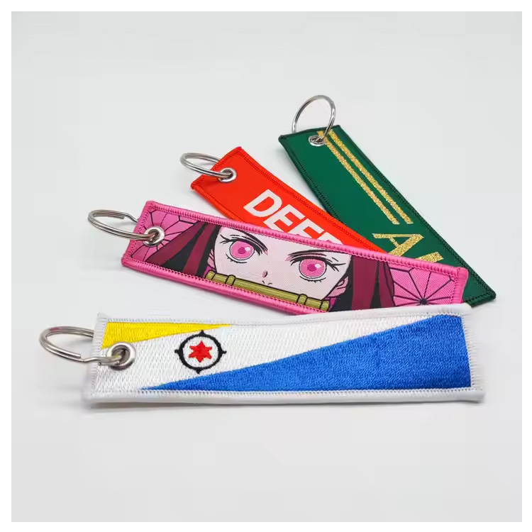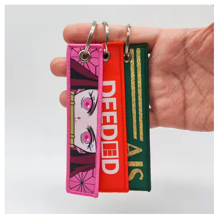 Rantaian utama Rantaian Fabrik Anime Sulaman Kunci Tag. Bahan kain ringan dengan percetakan sublimasi, sesuai untuk hadiah promosi, peminat anime, atau penggunaan sehari -hari dengan sentuhan yang bergaya.