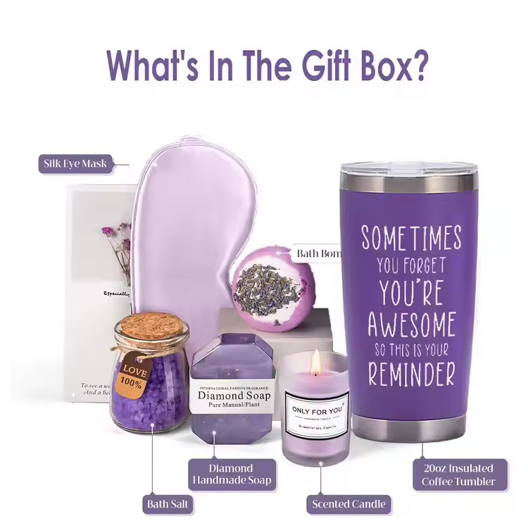 Setiap kotak hadiah Lunaire termasuk pemilihan barangan yang diselaraskan dengan indah seperti tumbler keluli tahan karat, lilin aromaterapi, sabun berbentuk berlian, bunga kering, dan kad ucapan. Set siap sedia ini menjimatkan masa anda sambil menyampaikan pengalaman yang lengkap dan tulus untuk sebarang kesempatan.