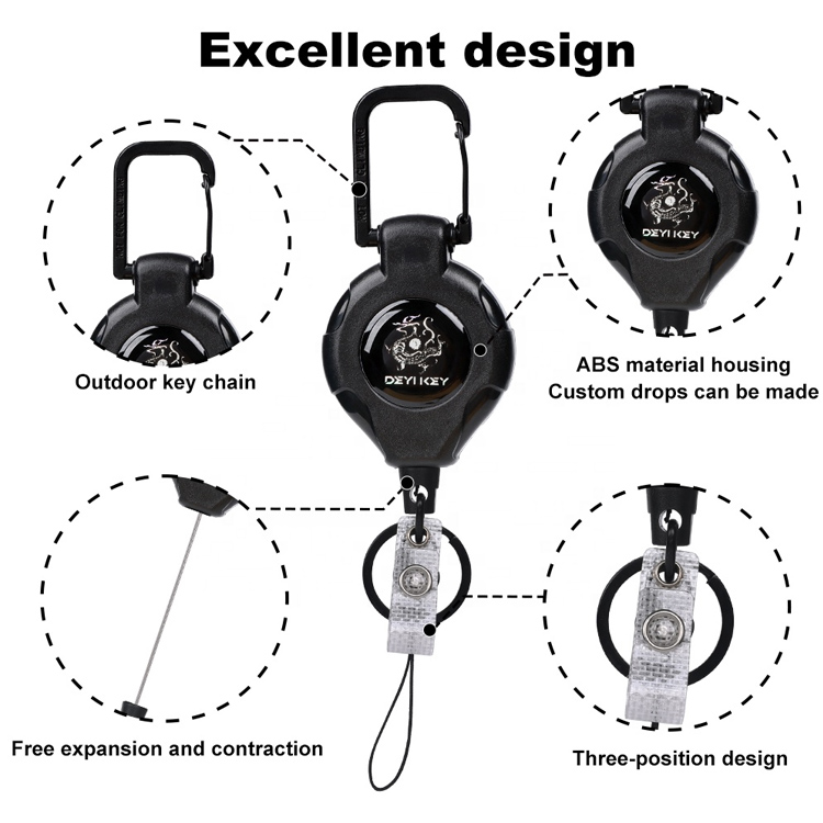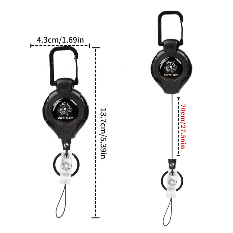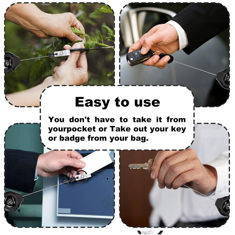 Mempunyai tali nilon 80cm yang tahan lama dengan mekanisme yang boleh ditarik balik yang membolehkan lanjutan yang selesa sambil menghalang kusut, menjaga kunci anda selamat dan boleh diakses semasa aktiviti luaran.