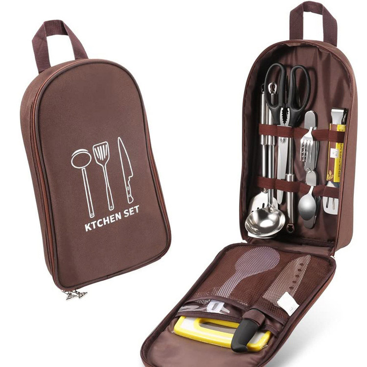 Ciri -ciri partisi dalaman yang direka secara strategik dan gelung elastik untuk mengatur sudu, penyepit, pisau, dan alat memasak lain, menghalang bunyi dan kerosakan semasa pengangkutan.