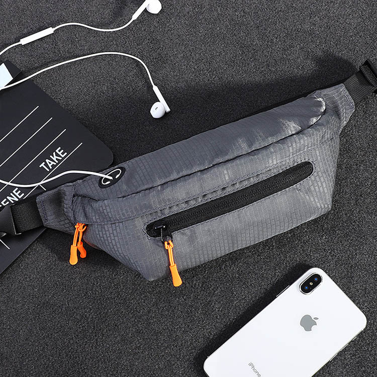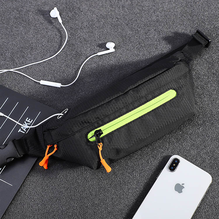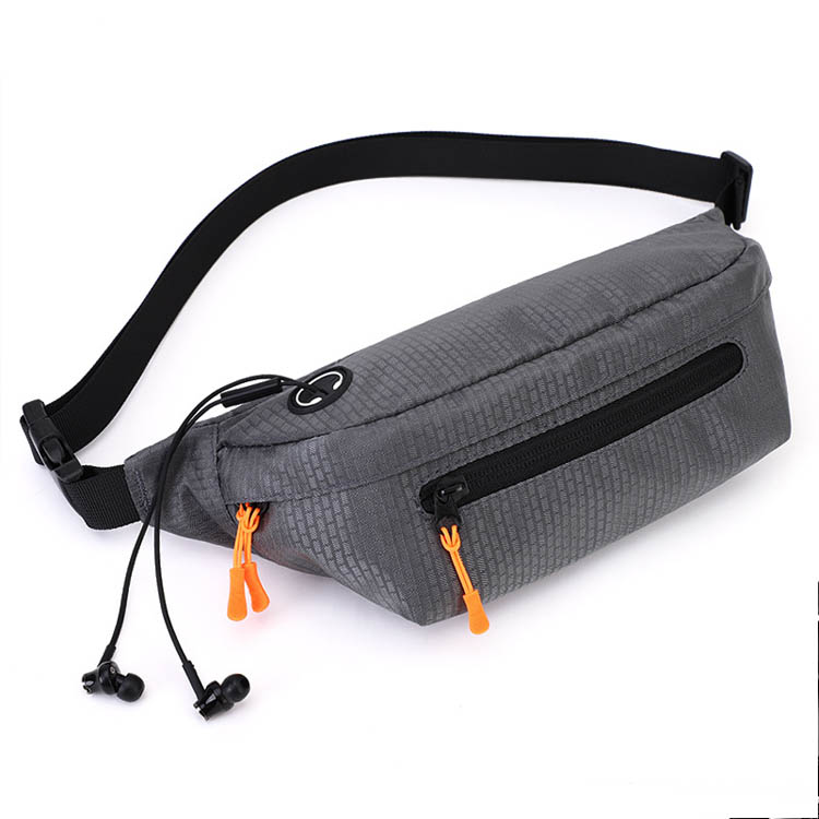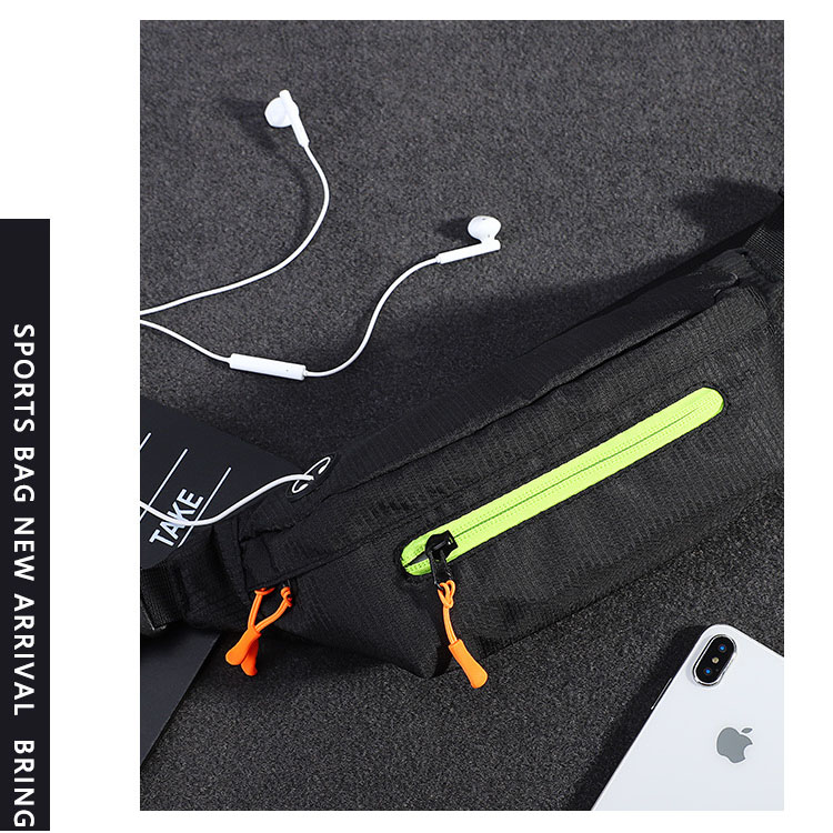 Sukan luaran kalis air ringan menutup pinggang beg pinggang. Beg pinggang kalis air ini mempunyai reka bentuk yang ringan dan sesuai dengan lubang fon kepala yang mudah. Khususnya dibuat untuk sukan luaran lelaki, ia memastikan penyimpanan yang selamat dan akses mudah ke keperluan.