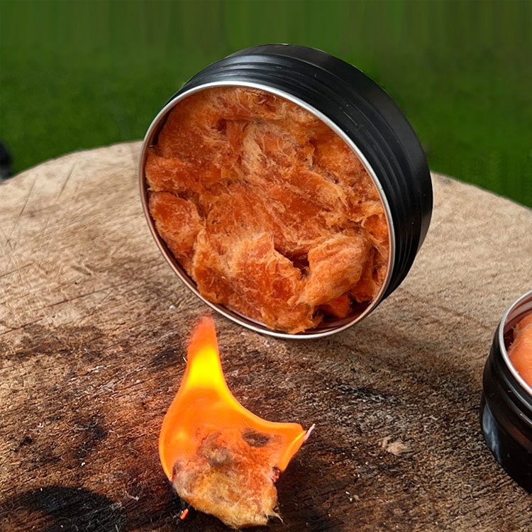Dirumuskan secara khusus dengan lilin kalis air dan lumpur api berasaskan mineral, Tinder ini mencapai pencucuhan yang cepat walaupun terdedah kepada hujan, salji, atau kelembapan yang tinggi, memastikan kebakaran yang boleh dipercayai bermula dalam situasi kelangsungan hidup kritikal.