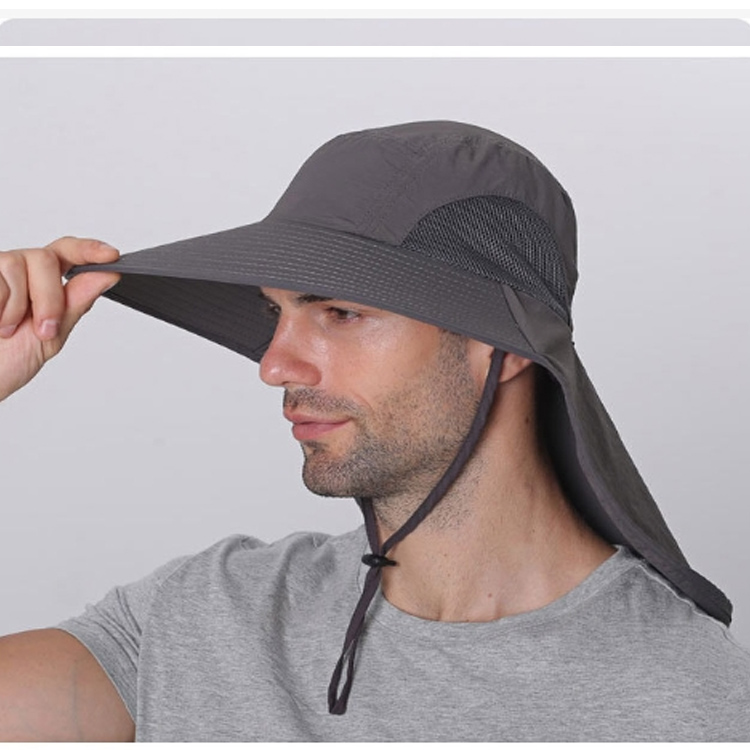 Topi pantai perlindungan matahari yang lebar dengan topi matahari dengan flap leher. Penyelesaian perlindungan matahari yang muktamad untuk pengembaraan luar. Topi pantai yang luas ini mempunyai flap leher yang boleh dilepaskan dan kain rated UPF50+. Direka untuk mendaki, safari, dan memancing, ia menyediakan liputan lengkap untuk lelaki dan wanita.