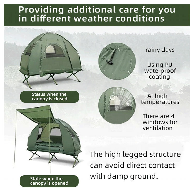 Ciri-ciri platform tidur yang terbina dalam dan tinggi yang menggabungkan perlindungan kelembapan-bukti dengan keselesaan yang dipertingkatkan, dengan berkesan memisahkan anda dari tanah lembap dan peningkatan penebat.