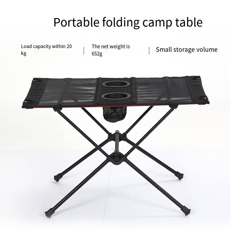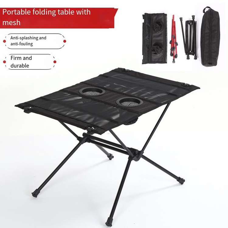 Ultralight Camping Table Nylon Nylon Meat Maintable Table. Anda larutan meja mudah alih muktamad untuk pengembaraan luar. Jadual perkhemahan ultralight ini mempunyai pembinaan nilon tahan lama dengan permukaan mesh bernafas dan pemegang cawan bersepadu. Reka bentuk yang boleh dilipat memastikan mudah alih maksimum untuk semua aktiviti luaran anda.